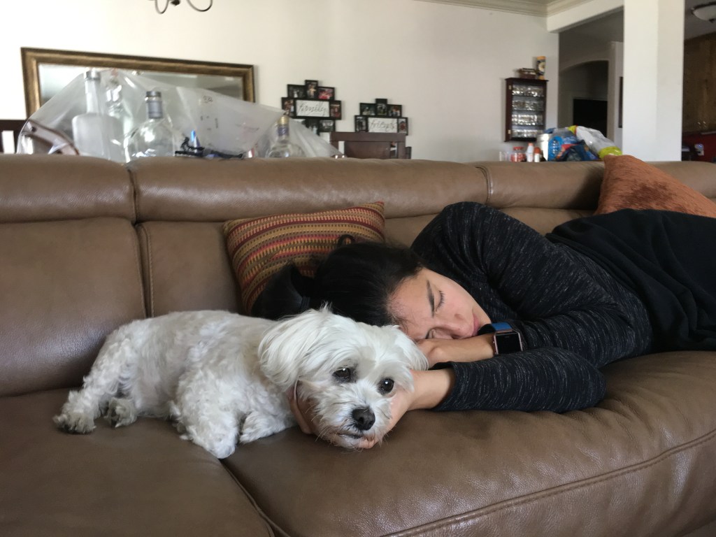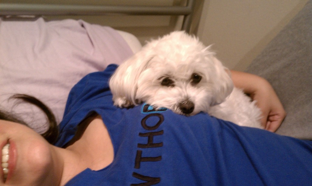 Sometimes I’d bring her with me to his apartment and let her run around the hallways or sniff around at the dog park. She loved it. I even took her to work a few times, and she’d fall asleep at my desk, never bothering for anything except for the occasional bathroom break. I took her to San Diego a few times with my then-boyfriend. On one of those trips, he and I got into a huge fight. He was yelling at me, I was crying, and she consoled me. She sat calmly on my lap and looked up at me with her big brown eyes, reminding me that everything was going to be okay. And she was right.
