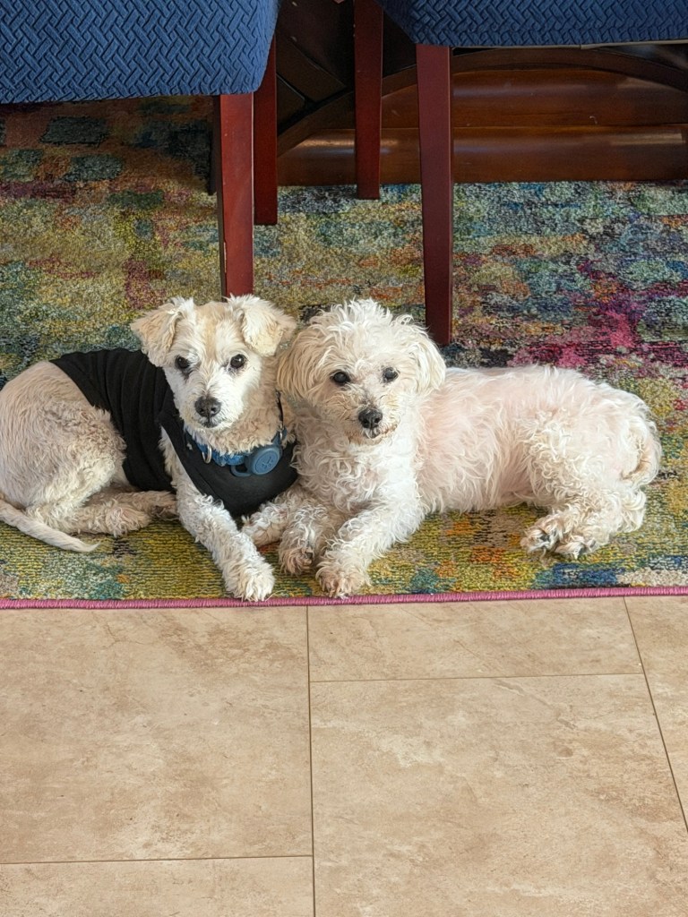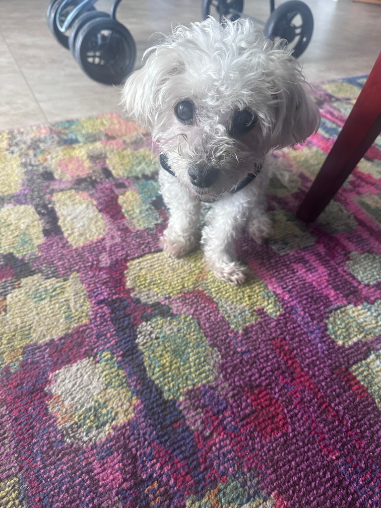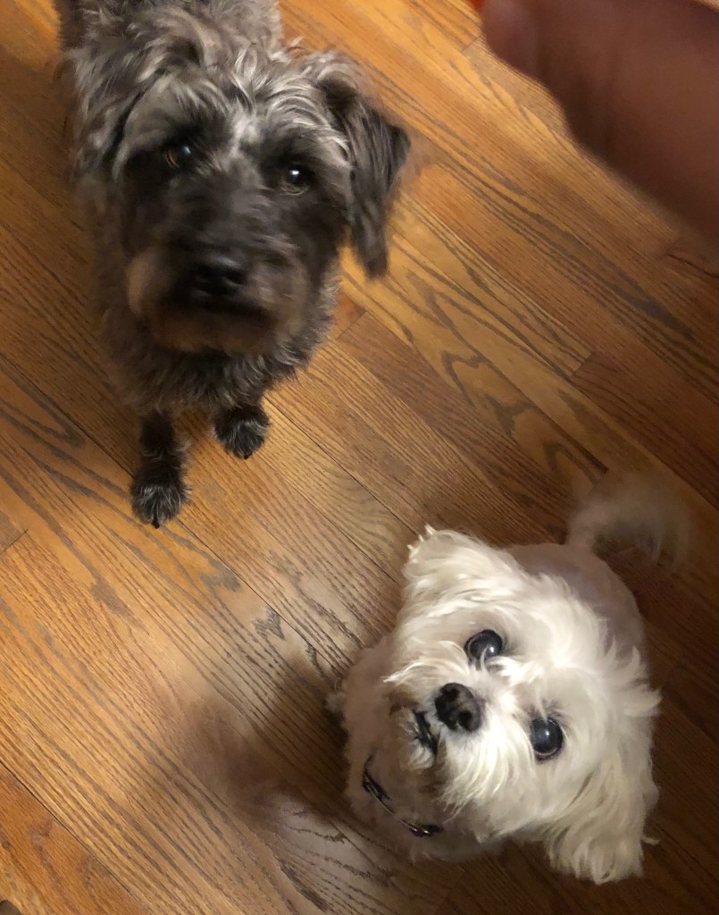 When I bought a house in 2021, I contemplated bringing her along to be a companion for my new pup, Chico, a schnauzer mix that Ralph and I adopted in 2020. I worried that it would break Cosmo’s heart, or that Ollie wouldn’t be as comfortable in a home that wasn’t senior dog-friendly. My mom had also become close to Ollie and didn’t seem excited about the idea of parting with her.