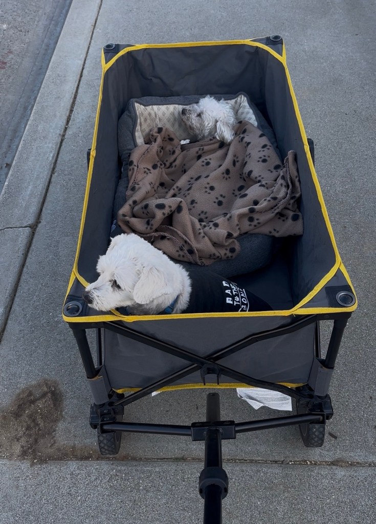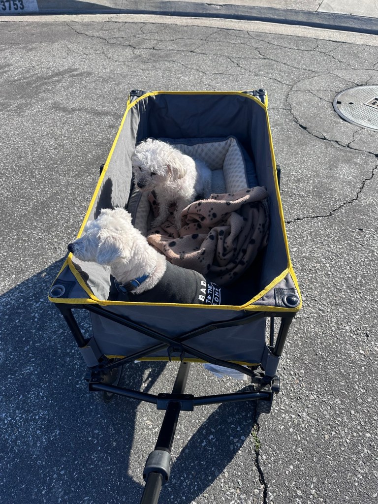 On January 31st, I sobbed all the way to my mom’s house, knowing it would be my last hangout with my sweet girl. She was so frail and had lost a lot of her hair, but was still happy to see me. I put her in a wagon and took her for one last stroll around the neighborhood. It was a beautiful day. She sat up a few times to take in all the smells and the warmth of the sun on her skin. I fed her donuts, and when I had a moment alone with her, I apologized for not being there enough. She deserved all the days at the park, the dog beach, the chair next to me at a restaurant with outdoor seating, and countless opportunities to stick her head out the window while I was driving. She licked my face and made a little Ollie noise that I interpreted as forgiveness that I wasn’t sure I deserved, but was really grateful for.