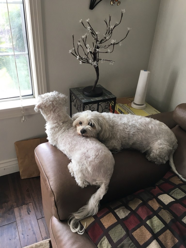 She was eight years old when we moved out of my grandparents’ house, and I told my mom that I wanted my own dog. One that would become bonded with me the way that Sheeka had bonded with her. Several weeks later, I found a litter of Maltese/Shih Tzus, which I affectionately labeled “malt shits” and had my eye on the only male (Stevie). They were in Phelan, California – a place you’d never go unless you absolutely had to. I felt drawn to this litter of pups, so off we went. We had to use a Garmin GPS device to get out there because it was 2009, and we didn’t have smartphones. Once we hit the dirt roads, the Garmin was like – you’re on your own, losers. I called the woman on the listing, and she said, “Do you see a llama? Great, keep driving.”
